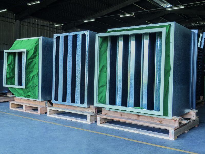 Estes equipamentos são fabricados pela Inescap para uso em diversas aplicações, como, Centrais de Grupos Geradores com motor a Diesel, Gás Natural e Etanol, para uso em tubulações para ventilação industrial, para sistemas de ventilação de salas de máquinas (Compressores, prensas, etc), para sistemas de ventilação de cabinas acústicas e muitas outras aplicações. A Inescap tem o cuidado de desenvolver estes produtos especificamente por faixa de freqüência acústica, ou seja, atenuadores para baixas, médias e altas freqüências e claro realizamos simulações numéricas (Computationalfluid dynamics – CFD), para determinar as Perdas de Carga no sistema e todo o estudo termo-dinâmico. Somos hoje sem dúvida referência na fabricação destes equipamentos em todo o Brasil.